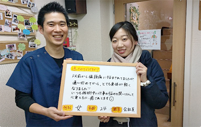 以前から偏頭痛に悩まされてましたが、通い始めてから、とても身体が軽くなりました!!
