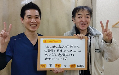 いつも施術中に仕事の悩みも聞いてもらって心身ともに癒されてます